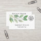 Cette carte de visite moderne et verdoyante conviendra parfaitement à un petit chef d'entreprise, un consultant, un styliste et plus encore. Le design botanique présente des feuilles d'aquarelle dans les tons verts. Facilement personnalisable avec vos détails et logo. Utilisez l'outil de conception pour modifier la taille, le style ou la couleur du texte. Aquarelle originale © Michele Davies.