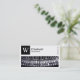 Un modèle de carte de visite avec une longue zone rectangulaire image/photo avec une photo de gros plan de leavers de type machine à écrire qui peuvent être remplacés par votre propre image ou photo et avec un panneau en haut à gauche pour un monogramme ou logo qui inclut un "W" comme exemple de monogramme qui peut également être changé. La conception est équilibrée avec quatre petits symboles de texte rectangulaire à droite créés avec la police de symbole Semaphore. La zone blanche est également un masque de cadre qui permet de positionner et redimensionner facilement une photo en dessous. Nom de l'entreprise et type d'entreprise/devis sur le devant avec nom et coordonnées sur le dos en blanc sur un arrière - plan gris foncé contrastant. Peut être adapté à une variété d'entreprises et d'autres utilisations.