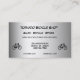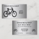 Ce carte de visite annonce un magasin de bicyclette se spécialisant dans les ventes, les locations et les réparations. Tout le texte sur l'avant et le dos peut être customisé pour vos affaires spéciales. Il comporte une conception contemporaine d'un motif abstrait d'une bicyclette noire sur un arrière - plan métallique d'argent, gris et blanc.