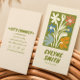 Carte De Visite Main dessinée Écrite Vert Gras Rétro Boho Floral
