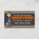 Carte de visite contagieux superbe unique et d'oeil pour vous aider à trouver le travail en tant que bricoleur, charpentier, auteur, constructeur de plate-forme, difficulté-il type. Ce dessin amical et simple comporte un ouvrier dur heureux avec un grand sourire et des combinaisons. Ses mains tiennent les outils de son commerce : peinture, une boîte à outils avec des clés, cordes, marteau, tournevis etc. Vous pouvez CUSTOMISER LE TEXTE pour vous promouvoir des manières plus spécifiques.