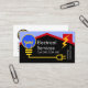 Le toit est doté d'un bâtiment sur le toit avec une ampoule électrique. Le boulon à éclair jaune met en évidence le nom commercial "Electrical Services" et les coordonnées. Juste à côté de la prise d'alimentation est votre nom prestigieux. Sur le dessus, dans une couverture blanche, les détails sont sur le côté gauche de la carte avec un logo de boulon de la maison en or en haut. Ceci est suivi par le nom de l'entreprise, ses coordonnées et une option de légende de slogan pour faire connaître vos services. Un excellent design pour les électriciens à utiliser.