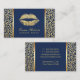 Maquillage Artiste Gold Lips Luxury Leopard Cartes de visite bleu marine.