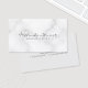 Carte de visite de Marbre blanc professionnel élégant avec nom en gris moderne script et titre de profession en gris moderne sans serif style de police sur blanc marbre arrière - plan avec coordonnées à l'arrière du design. Parfait pour un maquilleur, designer, photographe, wedding planner et de nombreuses autres professions.