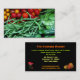 Dessinez les clients à votre épicerie organique avec ce carte de visite animé qui des tomates cerise de rouge et d'or de caractéristiques, des haricots verts, des pois de neige et des concombres pour créer un beau, artistique avant. Le dos a des poires, des roses et le texte spécifique. Customisez tout le texte pour adapter votre magasin.