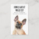 Faites plaisir à votre chien randonneur aventures! Notre carte de visite est doté d'une aquarelle, d'un visage de taureau français et d'une typographie décalée qui apporte une touche ludique. Contactez-nous pour la randonnée à chiens, où chaque promenade est une aventure.