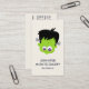 Cartes de visite avec un adorable visage monstre frankenstein. Il a de grands yeux et un petit sourire avec une cicatrice sur le front. Des boulons classiques qui sortent des côtés de sa tête. Ce type est vraiment mignon et pas effrayant du tout.