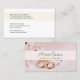Cette carte de visite allie le beige doux et le rose pastel pour une touche d'élégance féminine. L'avant présente une calligraphie gracieuse, tandis que l'arrière dispose d'une police propre et moderne pour plus de clarté. Une photographie de bagues d'or et de fleurs élégantes apporte une touche raffinée et tranquille, faisant de cette carte un mélange parfait de style et de professionnalisme.