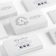 Carte de visite, taille : Carré : 6.4 cm x 6.4 cm, papier : Signature UV mate, coins : Carré