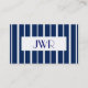 Un carte de visite décoré d'un monogramme élégant avec une marine simple et un filet blanc. Il y a des cartes de note, des autocollants et des timbres-poste à assortir.