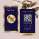 Cartes de visite élégants en bleu marine et or avec espace pour votre code et logo QR scannable, parfait pour les agents immobiliers, notaire public, avocats ou tout autre service professionnel. Ce design carte de visite luxueux présente une bordure en faux or, arrière - plan de marine, espace pour un code QR dans un cadre en or avec vos coordonnées en dessous. Vous pouvez éditer l'arrière - plan de marine à n'importe quelle couleur pour convenir à votre marque!