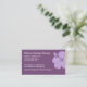 Belle fleur d'hibiscus thème Massage et physiothérapeute modèle de carte d'affaires dans les tons violet avec disposition organisée vous pouvez customiser en ligne. Conçu pour un thérapeute indépendant ou une clinique de physiothérapie.