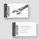 Wrench Mechanic Carte de visite a une conception minimaliste d'une photo de clé sur un arrière - plan blanc avec une bande noire sur le côté gauche où la typographie nom commercial et profession ou service est positionné.