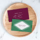 Carte de visite moderne avec un design géométrique en couches vertes avec un centre blanc à l'avant et un solide côté pourpre à l'arrière. Ce carte de visite est idéal pour diverses professions comme architecte d'intérieur, organisateur d'événements, consultant, écrivain, blogueurs, blogueurs, etc ; quiconque veut un moyen de faire connaître aux gens qu'ils rencontrent dans la vie réelle comment les trouver et leur travail/portfolio en ligne et sur les médias sociaux. Personnalisez-le en remplaçant le texte de l'espace réservé. Pour plus d'options comme changer la police et sa taille/couleur ou l'espacement entre les lettres cliquez sur le bouton "Personnaliser". *Veuillez noter que le filigrane Zazzle qui apparaît dans l'aperçu du zoom n'apparaîtra PAS sur le produit imprimé final. © Bois de rose et agrumes