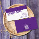 Réseau avec ces élégants cartes de visite violets et blancs avec vos informations sur le devant et un code QR pour scanner à toute adresse URL sur le dos. Personnalisez-vous pour être le vôtre.
