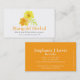 Carte de visite simple moderne marigold herboriste. Conçu pour les propriétaires d'entreprises de marigold et d'herbes médicinales et les producteurs et spécialistes de marigold. Personnalisez votre carte avec vos détails. Doté d'un art botanique marigold peint de manière unique par l'artiste Sarah Trett.