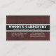 Carte de visite de menuiserie/charpentiers : Écrivez la raison sociale avec le slogan, les heures de travail, le numéro de la ligne de terre, le nombre mobile, l'adresse commerciale, et l'email. Supprimez le texte dans le domaine des textes pour laisser le blanc.