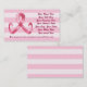 Cette conception de ruban de rose de cancer du sein est pour une infirmière très spéciale, Suzanne, qui finissait son décalage avec un autre patient quand elle a entendu les craintes d'une femme et est venue pour soulager quelqu'un dans la détresse. Merci, merci, merci pour votre gentillesse, compassion et générosité de l'esprit. Vous êtes un ange ! Disponible sur les cartes de visite faits sur commande.