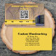 Cette façade carte de visite est ornée d'une photo de gros plan de bois de cèdre taché avec un ruban de mesure et un substituant de code QR. Personnalisez le modèle, supprimez le texte ou cliquez sur personnaliser pour sélectionner le style, la taille et la couleur de police que vous préférez. Ce design de carte de visite avant photo en bois peut bien fonctionner pour la restauration du bois, menuisier, travaux de construction ou peut-être votre entreprise.