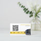 Ce devant carte de visite est muni d'une photo de gros plan d'un ruban de mesure jaune en bas. Personnalisez le modèle, supprimez tout texte ou cliquez sur personnaliser pour sélectionner un style de police, une taille et une couleur. REMPLACEZ le code QR avec le vôtre.Ce design carte de visite peut bien fonctionner pour la restauration du bois, menuisier, travaux de construction ou peut-être votre entreprise.