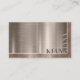 Un arrière - plan à l'effet métallique brillant et épuré dans les tons bronze brun bordés de fausse feuille met en valeur ce carte de visite frappant qui porte aussi son nom sous une forme horizontale et verticale défraîchie. Ce design de carte glamour pour n'importe quel professionnel est également disponible dans une variété d'autres couleurs pour répondre à vos besoins. Ajoutez vos coordonnées personnelles au verso à l'aide du modèle fourni. Recherchez ID791 pour voir d'autres options de couleur et produits avec cette conception.