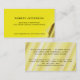 Ce carte de visite élégant et illustratif montre vos informations d'une manière de regard propre et professionnelle utilisant une police moderne sur un arrière - plan coloré jaune citron. Une boucle illustrée de page en or ajoute l'intérêt à la conception et montre à des clients la valeur de vos services professionnels. Notez svp : cette carte est une illustration fortement professionnelle imprimée en photo qualitiy. Aucun matériaux supplémentaire comme l'or ou l'aluminium d'or n'est impliqué dans la fabrication. Cette conception convient à beaucoup de buts. Les cartes de visite sont un grand outil marketing pour que des affaires et de petits entrepreneurs favorisent leurs services ou produits dans beaucoup de domaines d'activité comme l'éducation, consultation, finances, assurance, immobiliers, santé, beauté, forme physique, mode de vie, voiture, LUI, ordinateurs et beaucoup plus. Sur cette carte le nom est accentué par une ombre subtile. Cette carte est entièrement personnalisable. Vous pouvez choisir de posséder des arrangements pour la police, taille et la couleur et vous pouvez ajouter le texte supplémentaire, enlever des textfields ou télécharger vos propres logos et images. Customisez le texte sur la carte pour dire des clients et des associés au sujet de votre service ou produits ou gisements des textes de suppression que vous n'avez pas besoin. Montrez votre professionnalisme aux clients et aux amis et faites une impression durable en choisissant les copies de carte de visite professionnelles de Zazzles.