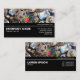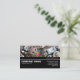 Un modèle de carte de visite/profil moderne et clair avec une image ou une oeuvre d'art dans la moitié supérieure et une moitié inférieure noire décorée d'une règle blanche soulignant l'adresse Web. L'image dans la moitié supérieure peut également être changée. L'envers a le même design. Site Web, nom de l'entreprise et adresse sur le devant avec nom et autres coordonnées sur le dos. Cette carte peut être customisée de différentes façons.