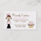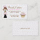 Joli carte de visite de boulangerie fait avec l'illustration graphique d'un motif de point rose et blanc lunatique de polka sur l'avant et le dos de la carte. Illustration graphique d'un petit gâteau de chocolat, avec le glaçage rose décorant le côté droit et une fille mignonne de boulangerie, sur l'avant gauche de la carte. Personnalisez le texte pour vos affaires de boulangerie. Grand pour à la maison des boulangers aussi.