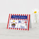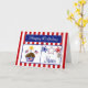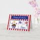 This Patriotic Birthday Card veut make your military Mama smile. Fonctions a red and white striped background, chocolate cupcake with stars, american flags, a flag heart and a candle, red, white & blue stars, a dog tag embossed with USA and a blue banner with the texte "Happy Birthday" en blanc. ©2015 Dog Tags & Combat Boots Military Cards by Sherry Harris