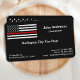 Mince ligne rouge Cartes de visite pompier - Etats-Unis Drapeau américain design dans les couleurs du drapeau pompier, dessin en détresse . Parfait pour tous les pompiers, pompiers et pompiers. Personnalisez avec nom, service, adresse et coordonnées. DROIT D'AUTEUR © 2020 Judy Burrows, Black Dog Art - Tous droits réservés. Mince Red Line Premium Fire Department Carte de visite pompier