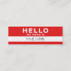 Carte De Visite Mini bonjour mon nom est : 2 dégrossis : rouge