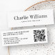 Mini cartes de visite élégants avec votre nom et vos coordonnées, ainsi qu'un code QR.
