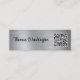 Mini carte de visite professionnel en métal brossé minimal en argent avec votre nom dans un script audacieux et élégant. Ajoutez l'adresse URL de votre site Web pour créer un code QR numérisable. Au verso, customisez du texte supplémentaire (comme le courriel, les numéros de téléphone, le nom de l'entreprise et l'adresse postale).
