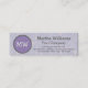 Carte De Visite Mini Monogramme pourpre lilas moderne de motif de point