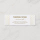 Ce Motif d'or Pois est un joli carte de visite qui a un glamour et un look mignon. Trouvez ceci et beaucoup d'autres un carte de visite charmant et personnalisez un carte de visite pour créer un d'un type. ©2010 Joshua Martin