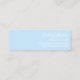 Modèle de logo simple et moderne pour un carte de visite. Sur le devant se trouve une grande typographie "bonjour" écrit verticalement, avec le logo de l'entreprise. Sur un arrière - plan de couleur bleu pâle avec le logo sur un côté, il y a du texte personnalisé en blanc sur le dos. Le nom est dans un style de script manuscrit.