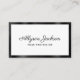 Cette carte de visite simple et élégante en feuille noire bordée est moderne mais classique. Les lignes propres sont polies et nettes. Les polices sont sobres mais luxueuses. Il est parfait pour n'importe quelle profession.
