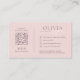 Elevate your brand with this luxurious and feminine design, featuring a beautiful blush-pink background and sophisticated deep-pink text on both sides. The front presents a clean layout with your name in a striking modern font, overlaid by a delicate, sweeping signature script. The back maximizes utility by neatly organizing contact details, social media icons, and a custom QR code, delivering a refined and highly functional first impression.