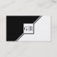 Modern black and white monogram and triangles modern geometric architect business card. The front includes two diagonal stripes one black and one white that separate the card in two triangles. A white square is on the center with your monogram. The back is of black color with two white lines and a QR code for more info.