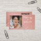 A chic and modern business card design for makeup artists and beauty professionals. This layout features a dusty rose background with leaf accents and elegant script typography. Perfect for salon owners, bridal makeup artists, and beauty consultants seeking a stylish, professional brand identity. Add your photo, QR code and business information for a personal touch.
