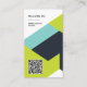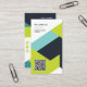 A bold and contemporary vertical business card featuring a geometric color-block design in fresh, modern tones. The front includes a scannable QR code for easy access to your website or portfolio, while the back displays your contact details and social icons in a clean, organized layout. Perfect for designers, creatives, and entrepreneurs who want a vibrant, professional way to stand out.