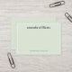 Light sage green or any color mini notecard with your name and custom text. They have a thin, subtle white border around the edge.