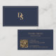 Carte De Visite Modern Minimalist Dark Blue Initials QR Code