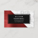 Carte De Visite Modern Ruby Red Brushed Metal White Marble Black