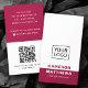 Couleur blanche et bordeaux ou personnalisée, design carte de visite moderne et professionnel avec champs modèles pour nom, nom/titre de l'entreprise, logo (photo ou autre graphique), code QR et informations de contact, y compris les icônes des médias sociaux. Modifiez la couleur de l'arrière - plan, déplacez et redimensionnez les éléments avec l'outil de personnalisation.