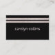 Carte de visite moderne et design en noir, à l'avant et à l'arrière. Des graphiques de deux bandes de parties scintillant rousses circulent sur le dessus avant de la carte. Personnalisez le texte en fonction de vos besoins professionnels. Une belle carte de sortie pour elle.