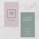 Carte de visite personnalisée avec une belle palette de couleurs pastel avec un monogramme personnalisé et un design géométrique. Ce design est offert sur différentes options de couleurs arrière - plans que vous pouvez trouver dans une collection "Pastel Modern Monogram Business" dans notre magasin.