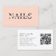 Moderne, Peach, QR Code Carte de visite - Disponible en 18 couleurs. Ce design carte de visite élégant et professionnel est doté d'une typographie audacieuse et d'un code QR personnalisé, parfait pour les entrepreneurs d'aujourd'hui qui sont les premiers à faire du numérique. Idéal pour les professionnels de la beauté, les techs à ongles, les artistes fouetteurs, les coiffeurs, les maquilleurs et les experts en bien-être. Customisez facilement votre nom, titre, coordonnées et code QR pour accéder à votre site Web, page de réservation ou profil Instagram. Imprimé sur un carton de haute qualité, ce design est disponible en 18 options de couleurs époustouflantes - noir, rose vif, blanc, beige, et plus encore - pour correspondre à votre marque ou style de salon. Étendez-vous et restez connecté avec une carte qui est