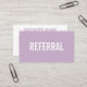 Le minimaliste, référence pourpre/violette, simple, professionnelle, à la mode en pastel/se réfèrent des cartes de visite d'un ami. Vos affaires sembleront toujours professionnelles et modernes avec cette carte. Le clic "personnalisent" pour ajouter votre information, ou "customisez" si vous voudriez changer des couleurs. Cette carte est déjà disponible dans quelques autres couleurs dans mon magasin TheBusinesscardShop : etc. de rose en pastel, de bleu, noir et blanc, gris.