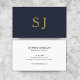 Un design carte de visite simple et épuré avec un arrière - plan bleu marine solide sur le devant avec typographie or moderne pour vos initiales. Le dos de la carte est blanc clair avec une simple typographie bleu marine que vous pouvez facilement personnaliser.